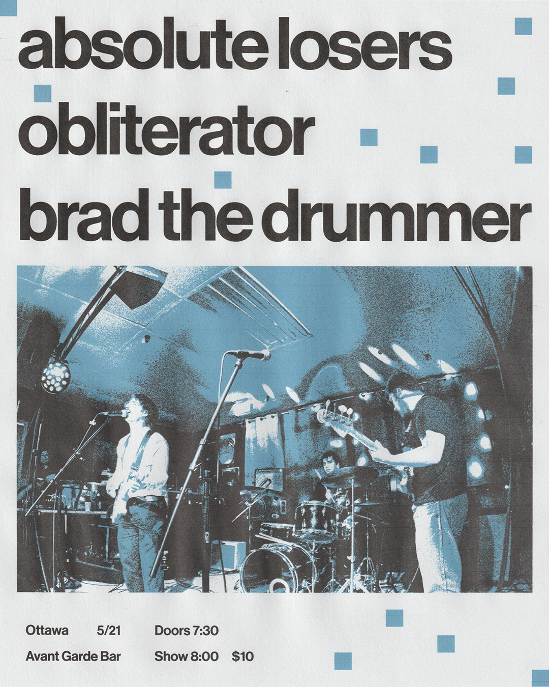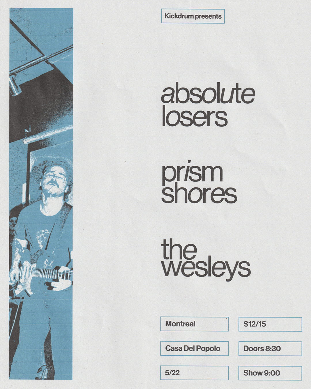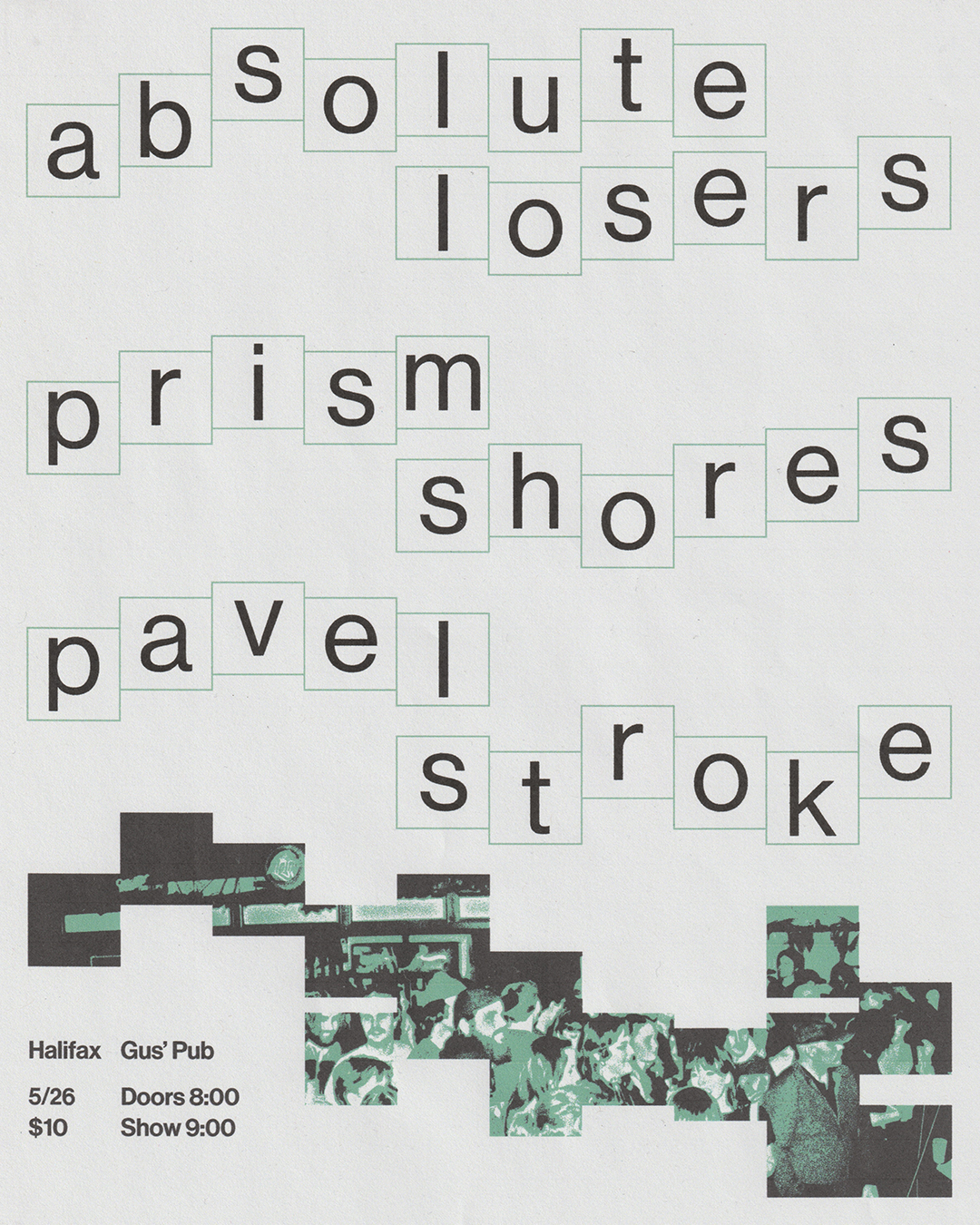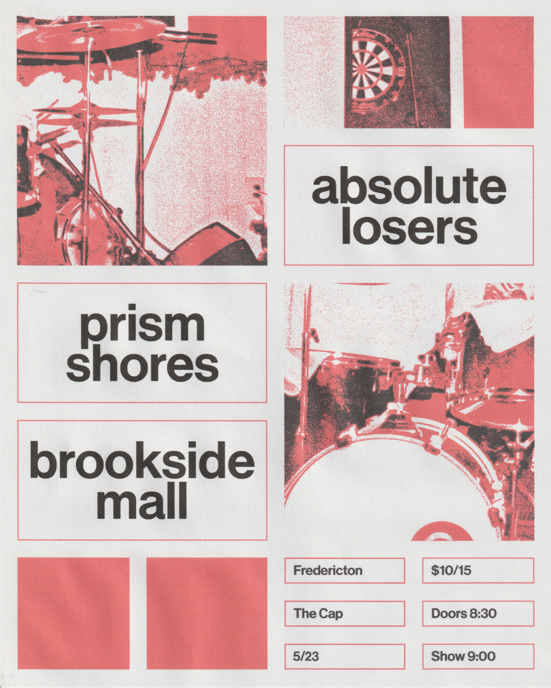 Tour poster designs for Absolute Losers (Charlottetown) with supporting band Prism Shores (Montreal).