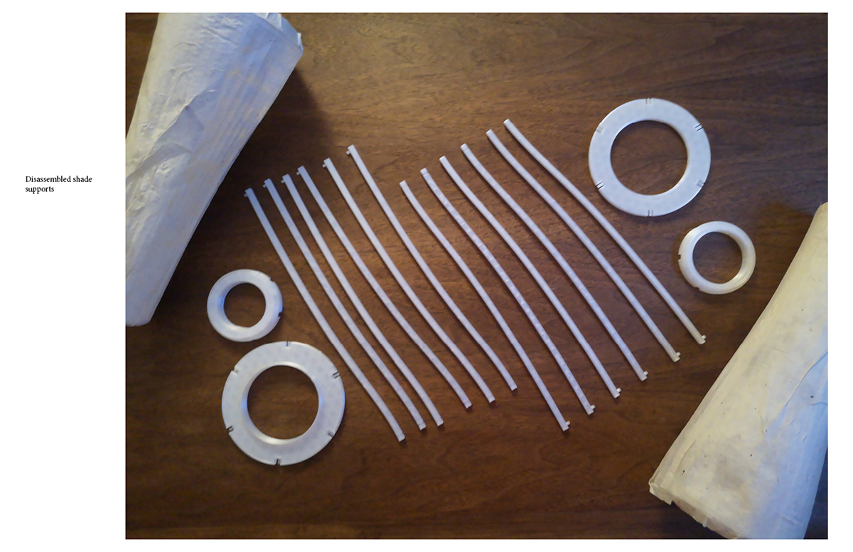 Project for DART 447. A low-energy cost lamp that utilizes biodegradable plastic and paper for its form. Snap-assembled for easy shipping and product lifecycle.